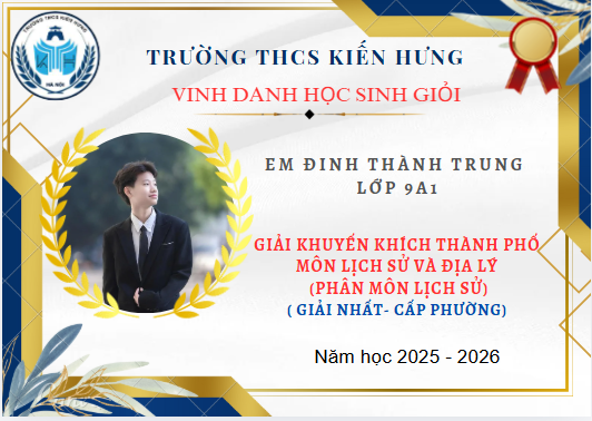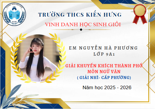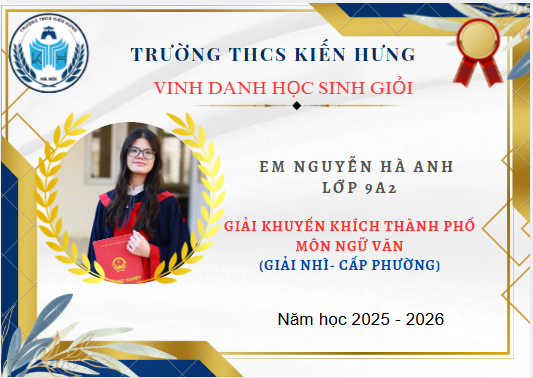 VINH DANH HỌC SINH GIỎI TRƯỜNG THCS KIẾN HƯNG ĐẠT GIẢI CẤP THÀNH PHỐ – NĂM HỌC 2025–2026